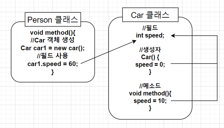 Car1.speed = 60;//필드 값 변경