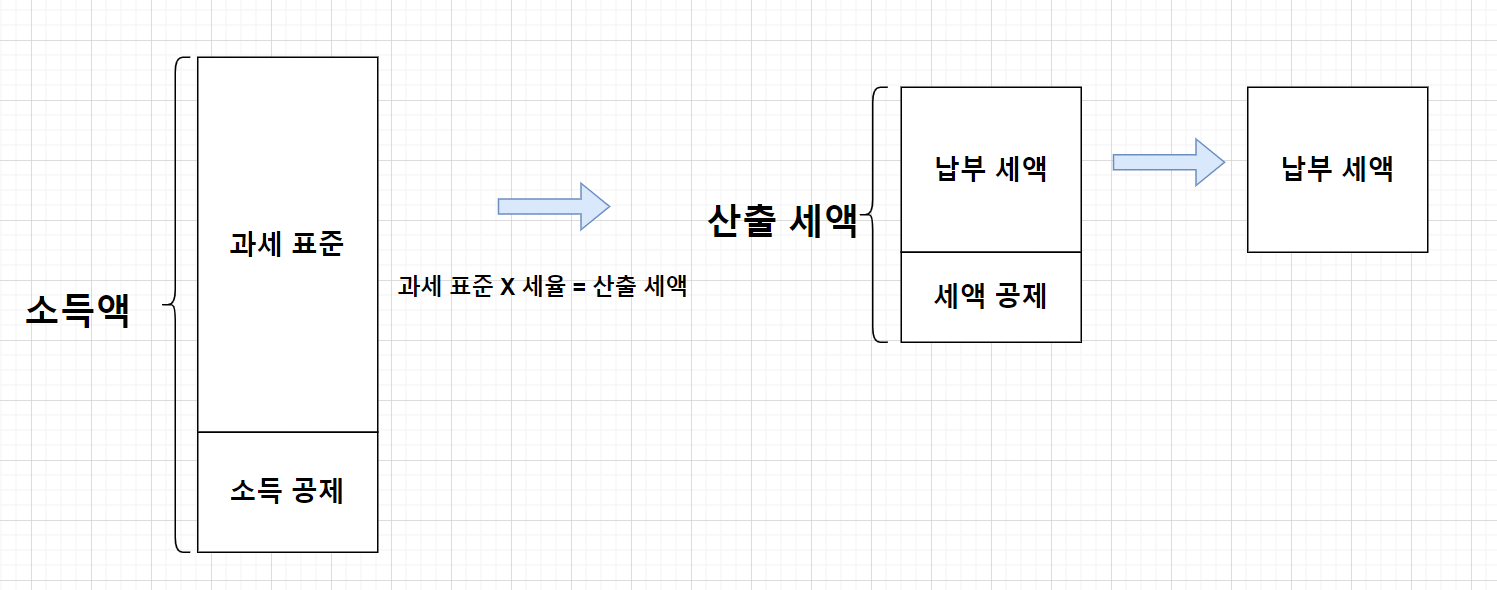 세액을 공제할 때, 소득에 세율을 곱해서 세액을 산출하는 것이 아니라 과세 표준에 세율을 곱해서 세액을 구한다.