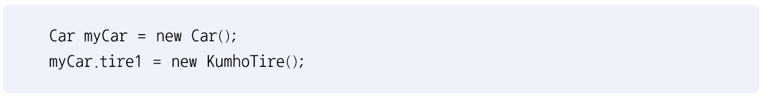 Car 객체를 생성한 후 다른 구현 객체를 대입할 수도 있다. 이것이 타이어 교체에 해당된다.