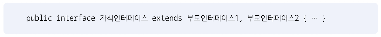 인터페이스도 다른 인터페이스를 상속할 수 있으며, 클래스와 달리 다중 상속을 허용한다.