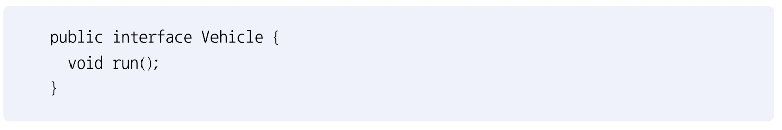 Vehicle 인터페이스가 아래와 같이 선언되었다고 가정해보자.