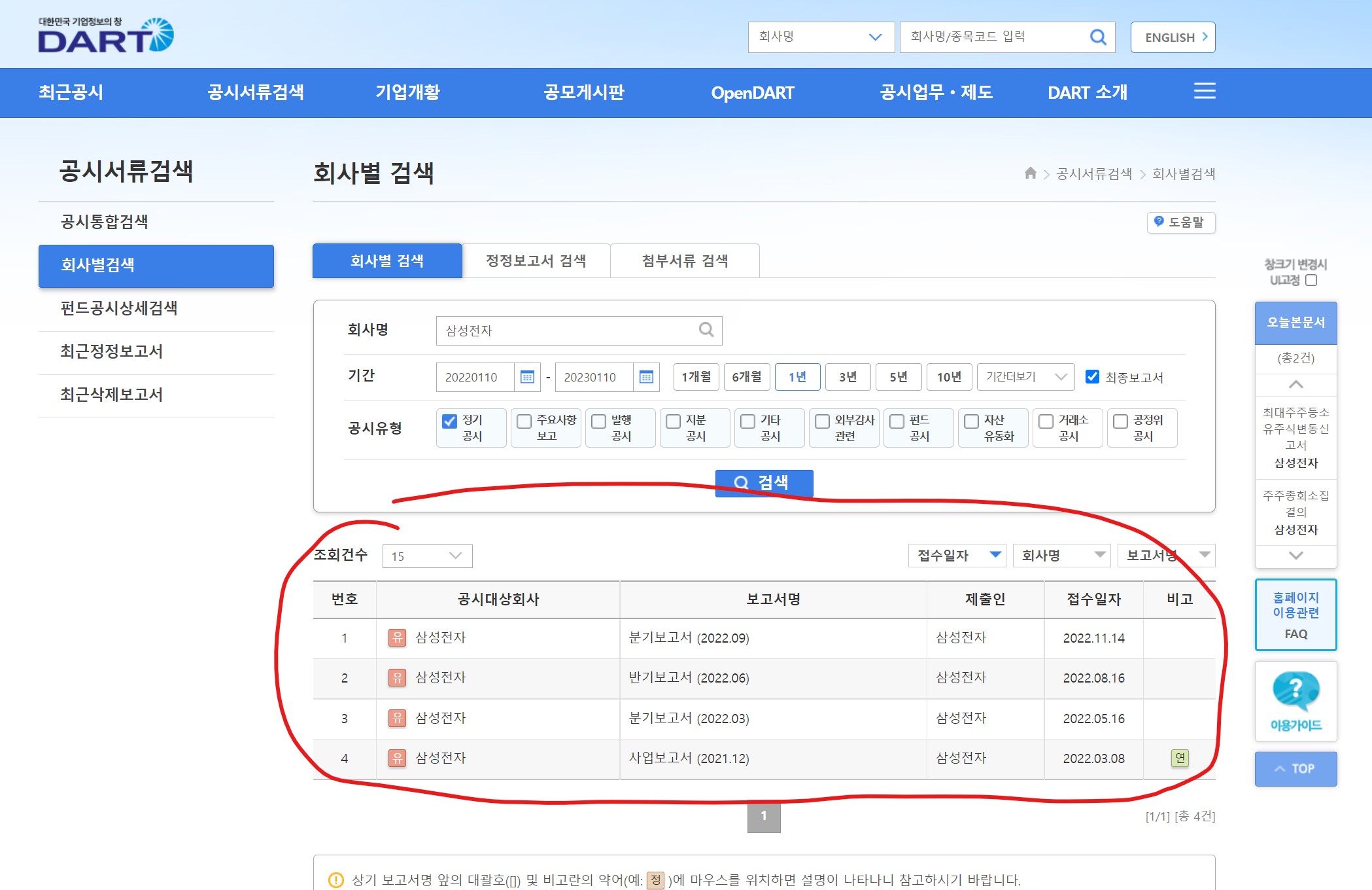 위 사이트는 전자공시시스템이다. 이 사이트에서 열람하고 싶은 기업의 사업보고서를 열람할 수 있다.