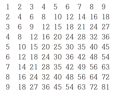 System.out.print(i*j + " ");