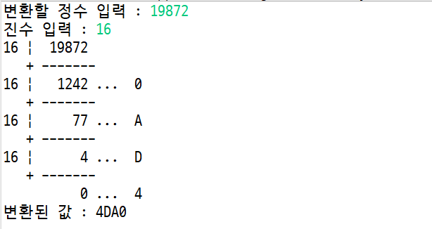 System.out.print("진수 입력 : ");