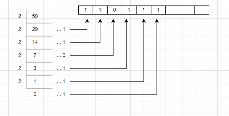 위와 같은 결과로 이루어진 배열을 역순으로 출력하면 진수변환이 되는 것이다.