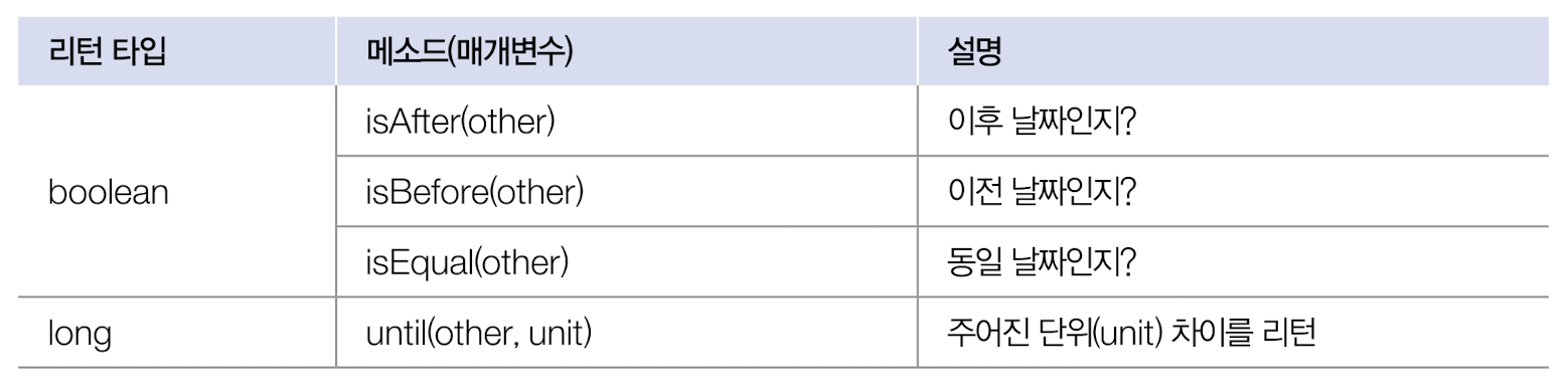 LocalDateTime 클래스는 날짜와 시간을 비교할 수 있는 아래의 메서드도 제공한다.