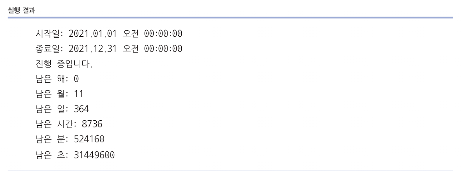 System.out.println("남은 일: " + remainDay);