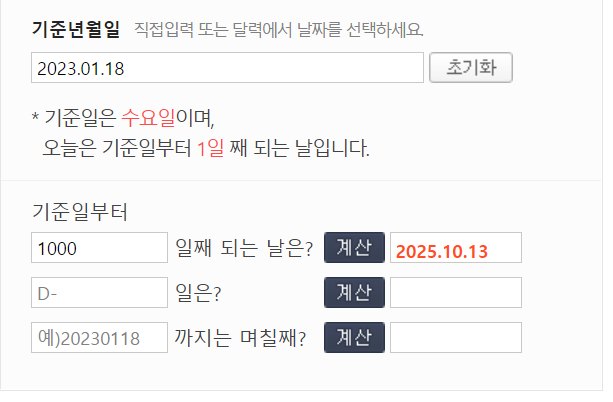 네이버 날짜 계산기는 기준일을 1일로 치지만 위 알고리즘은 기준일을 0일로 삼는다.