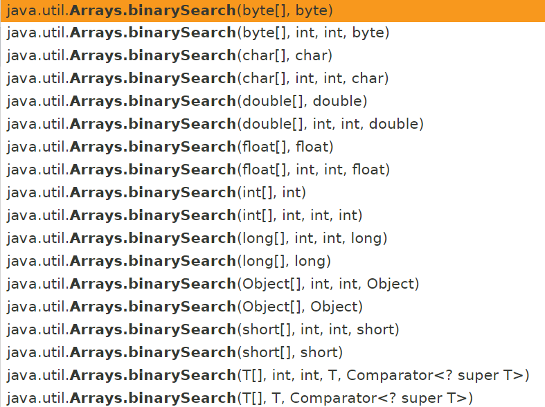 binarySearch 메소드는 위와 같이 오버로딩되어 있다.