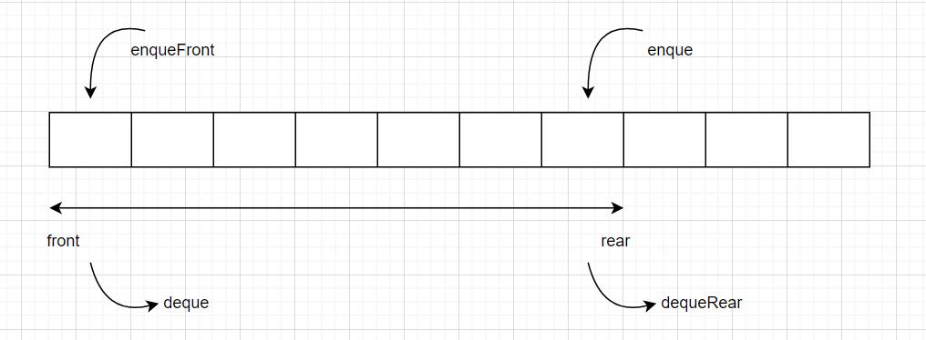 deque(Double Ended Queue)는 인큐와 디큐가 배열의 양쪽 끝에서 모두 발생할 수 있는 자료구조이다.