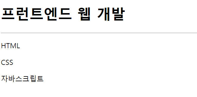 <h1>프런트엔드 웹 개발</h1> <--가장 큰 제목-->