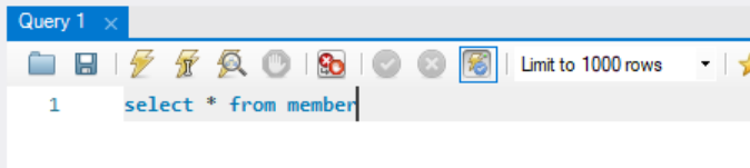 위와 같은 테이블을 생성했다고 하자. 테이블 이름은 member이다.