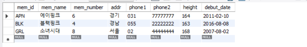 연락처가 있는 회원만 카운트하려면 전화번호의 열 이름을 지정하면 된다. 그러면 NULL 값인 항목은 제외하고 카운트하여 결국 연락처가 있는 회원의 인원만 나온다.