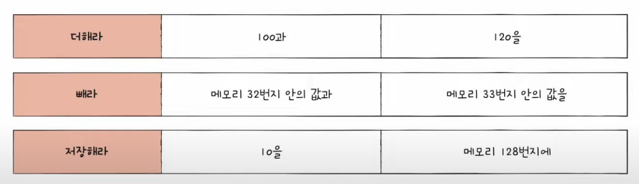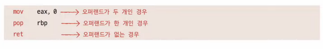 - 오퍼랜드는 '연산에 사용할 데이터' 또는 '연산에 사용할 데이터가 저장된 위치'이다.
