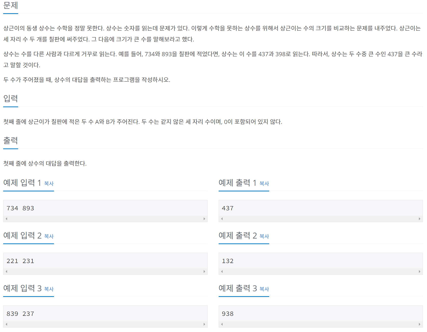 [C++] 백준 5단계 - 2908번 문제자료구조 & 알고리즘/BOJ2023. 4. 5. 00:47