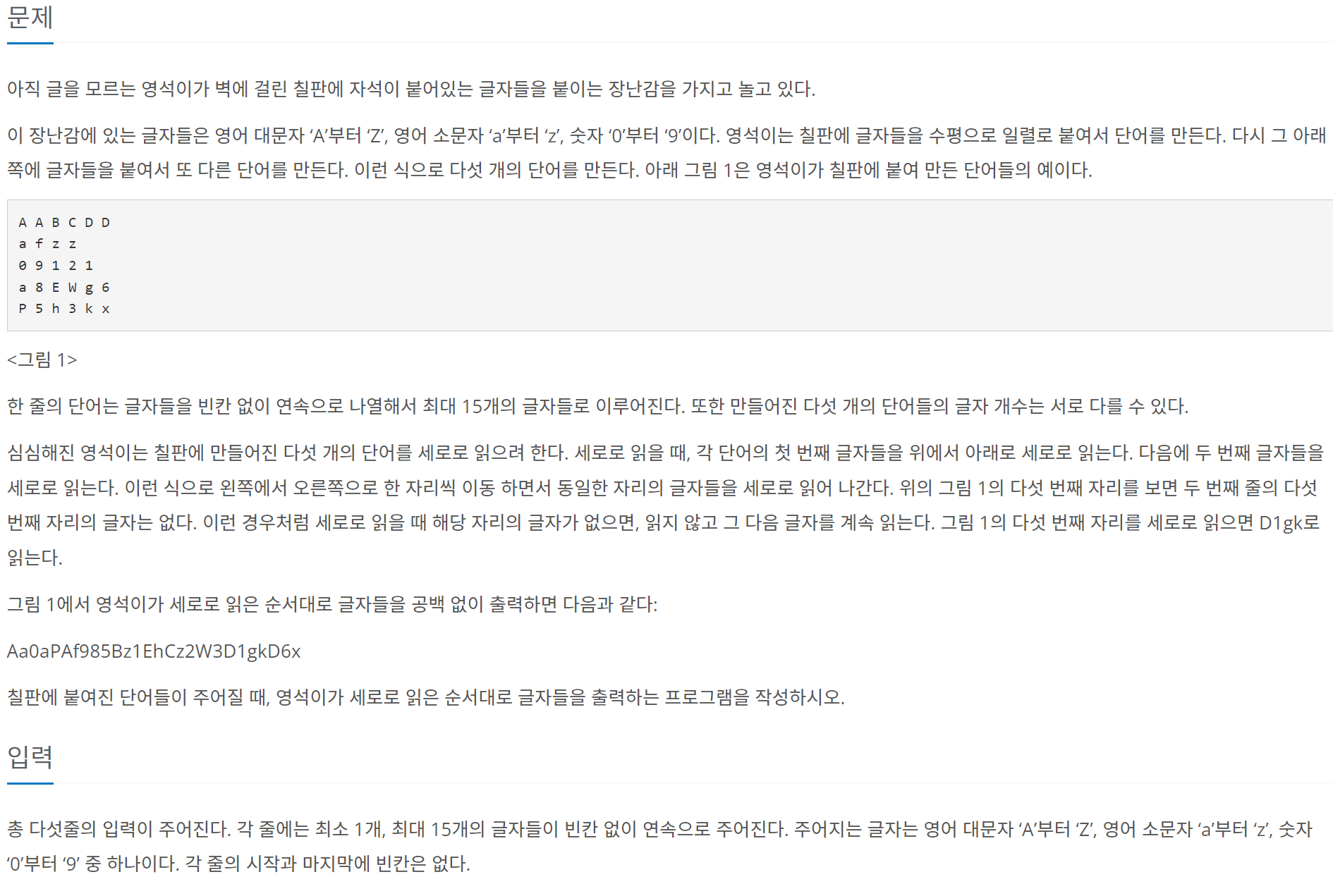 [C++] 백준 7단계 - 10798번 문제 (세로읽기)자료구조 & 알고리즘/BOJ2023. 4. 18. 18:16