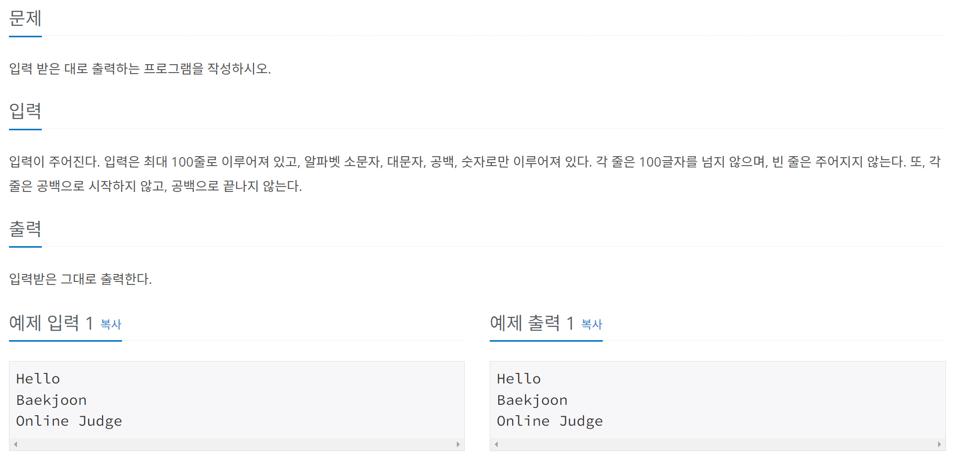 [C++] 백준 11718번 문제 (그대로 출력하기)자료구조 & 알고리즘/BOJ2023. 4. 25. 00:33