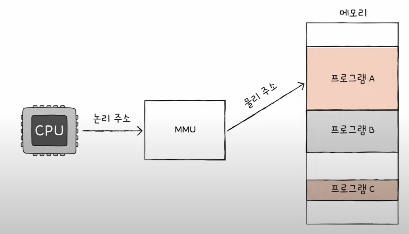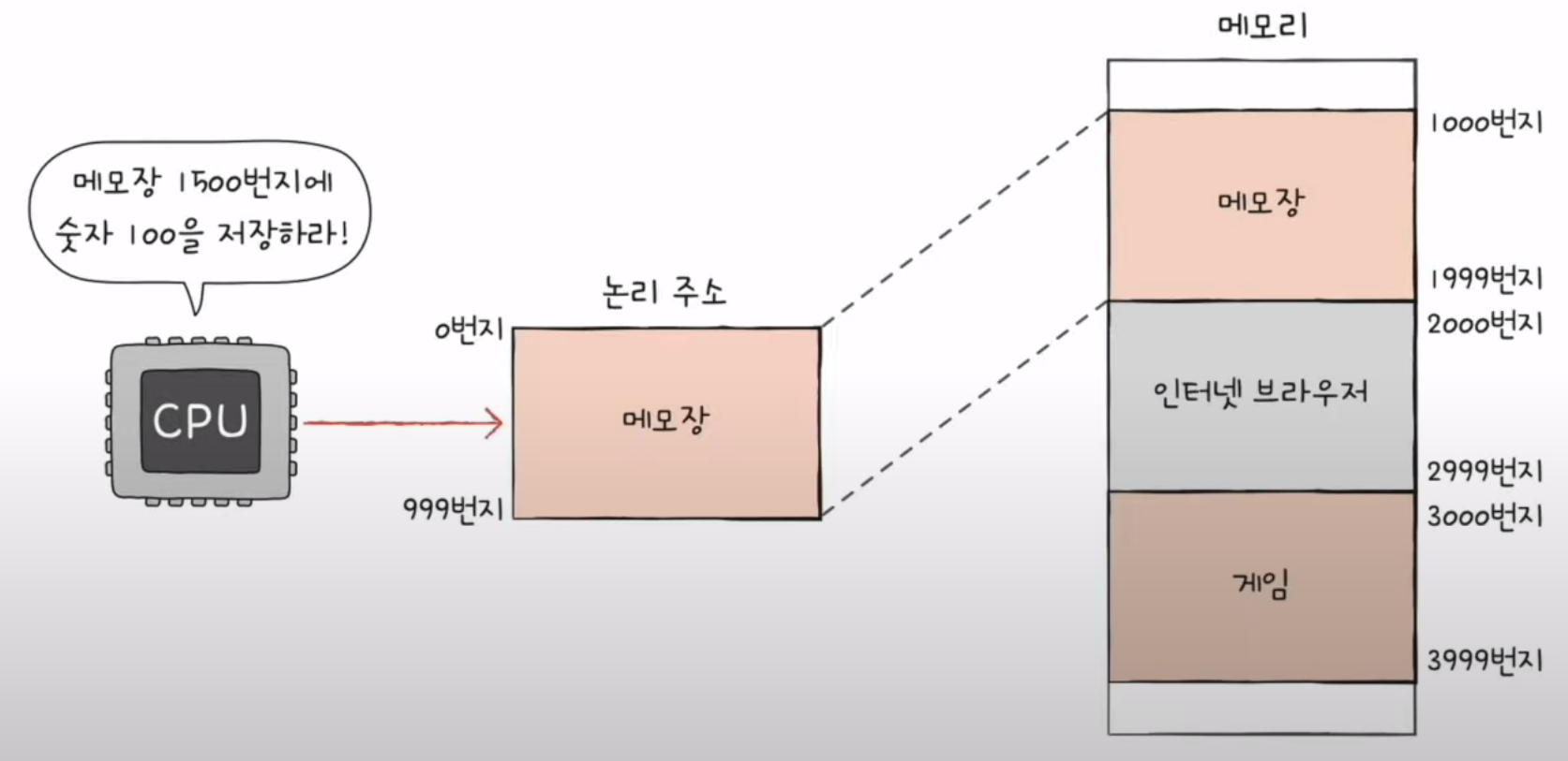 하지만 CPU가 이해하는 주소가 논리 주소라고 해도 CPU가 메모리와 상호작용하려면 논리 주소와 물리 주소 간의 변환이 이루어져야 한다.
