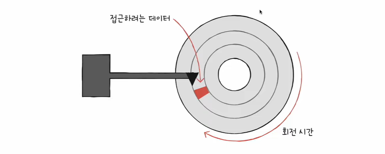 - 회전 지연(rotational latency) : 헤드가 있는 곳으로 플래터를 회전시키는 시간