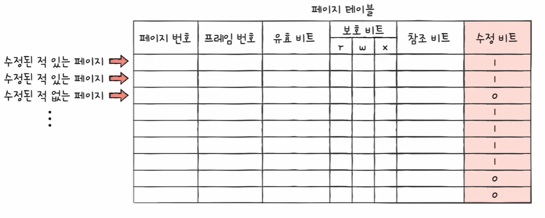 - 수정 비트가 0 : 변경된 적이 없는 페이지를 뜻함
