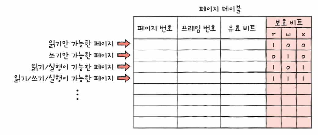 보호 비트가 1 : 읽고 쓰기가 모두 가능한 페이지를 뜻함