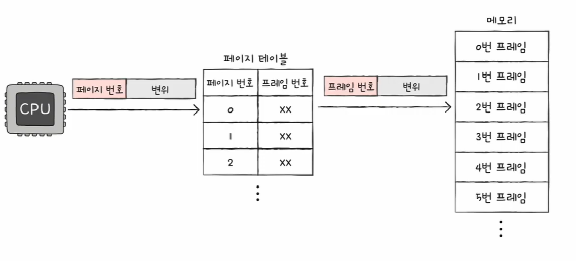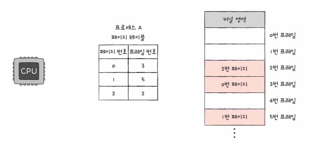 프로세스를 이루는 페이지가 어느 프레임에 적재되어 있는지 CPU가 일일이 알기가 어렵다.