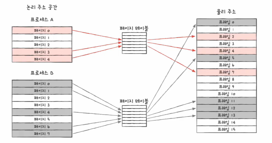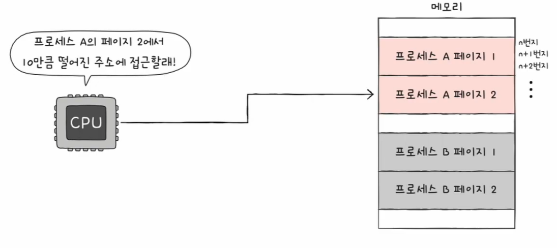 이렇게 하면 물리 주소상에서는 프로세스들이 분산되어 저장되어 있더라도 CPU입장에서는 연속적으로 보일 수 있다.