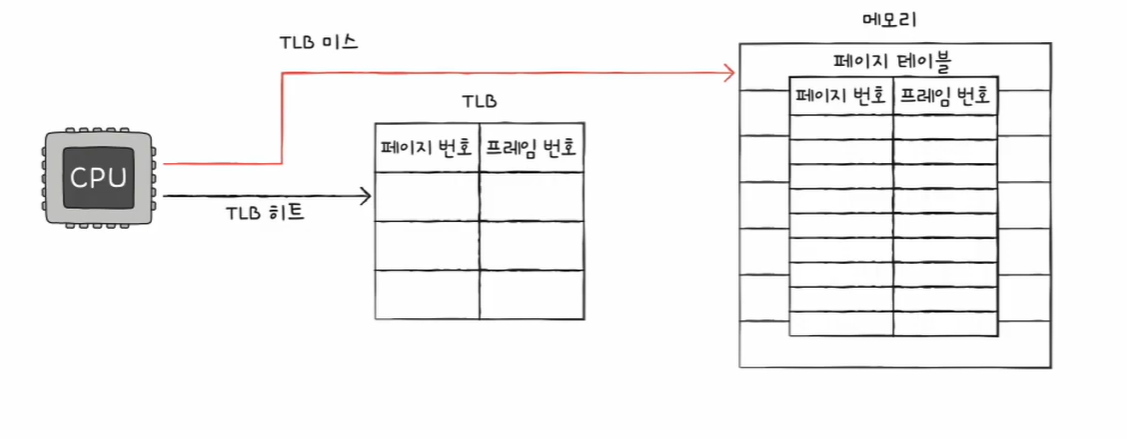 - TLB : CPU 근처에 있는 페이지 테이블의 캐시 메모리