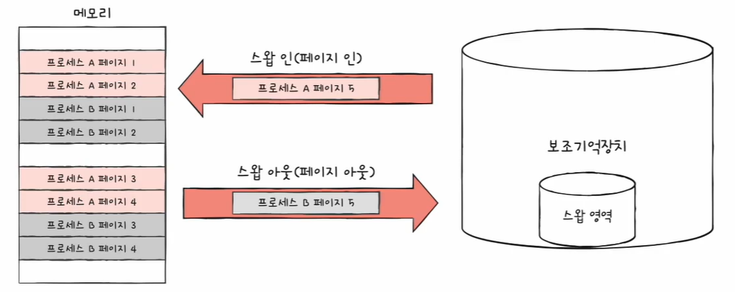 페이징을 사용하는 시스템에서는 프로세스 전체가 스왑 인/아웃이 아닌, 페이지 단위로 스왑 인/아웃이 된다.