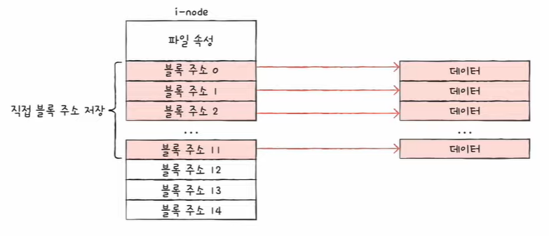 - 직접 블록 : 파일 데이터가 저장된 블록