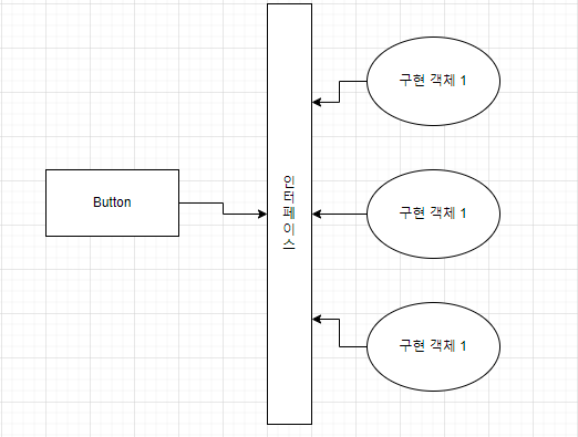 - 인터페이스에 여러개의 구현 객체가 대입됨으로써 다양한 버튼 클릭 이벤트를 구현할 수 있다.(다형성)