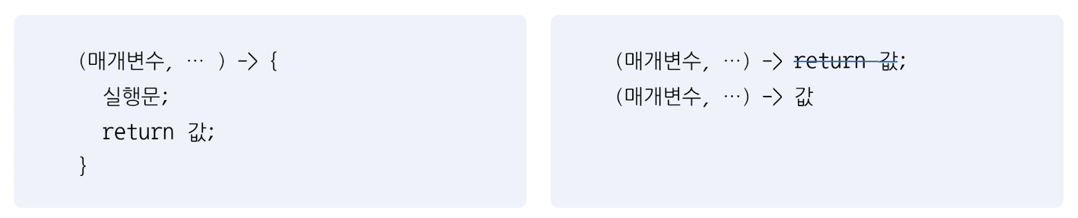 자바는 함수형 프로그래밍을 위해 Java 8부터 람다식을 지원한다.
