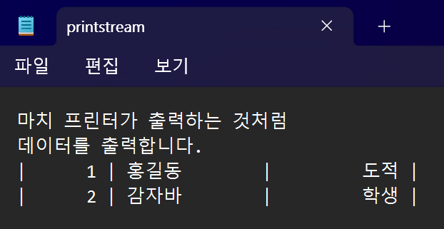ps.println("데이터를 출력합니다.");