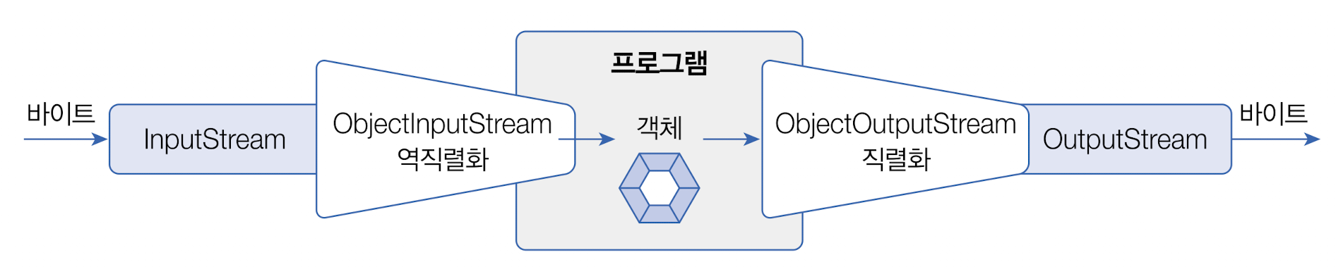 ObjectInputStream ois = new ObjectInputStream(바이트 입력 스트림);