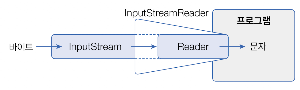 - 바이트 스트림(InputStream, OutputStream)에서 입출력할 데이터가 문자라면 문자 스트림(Reader, Writer)로 변환해서 사용하는 것이 좋다.