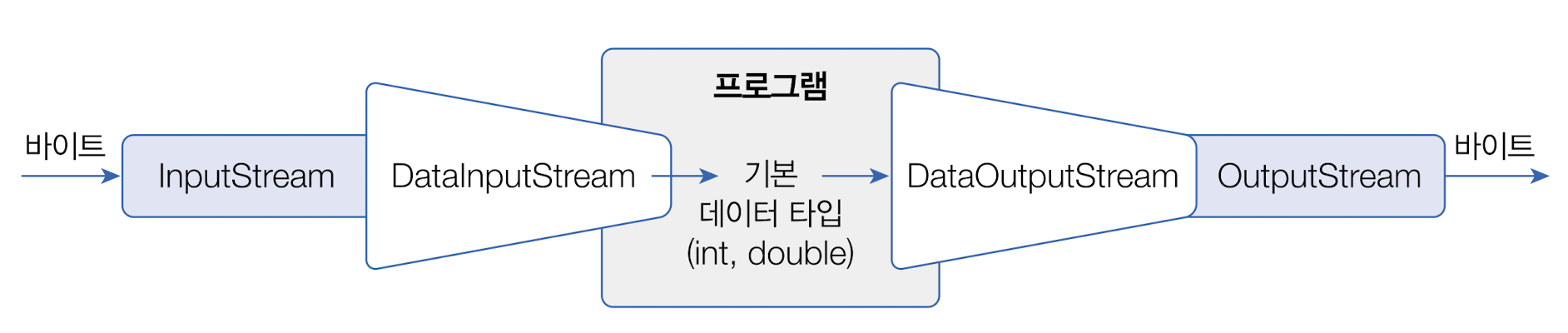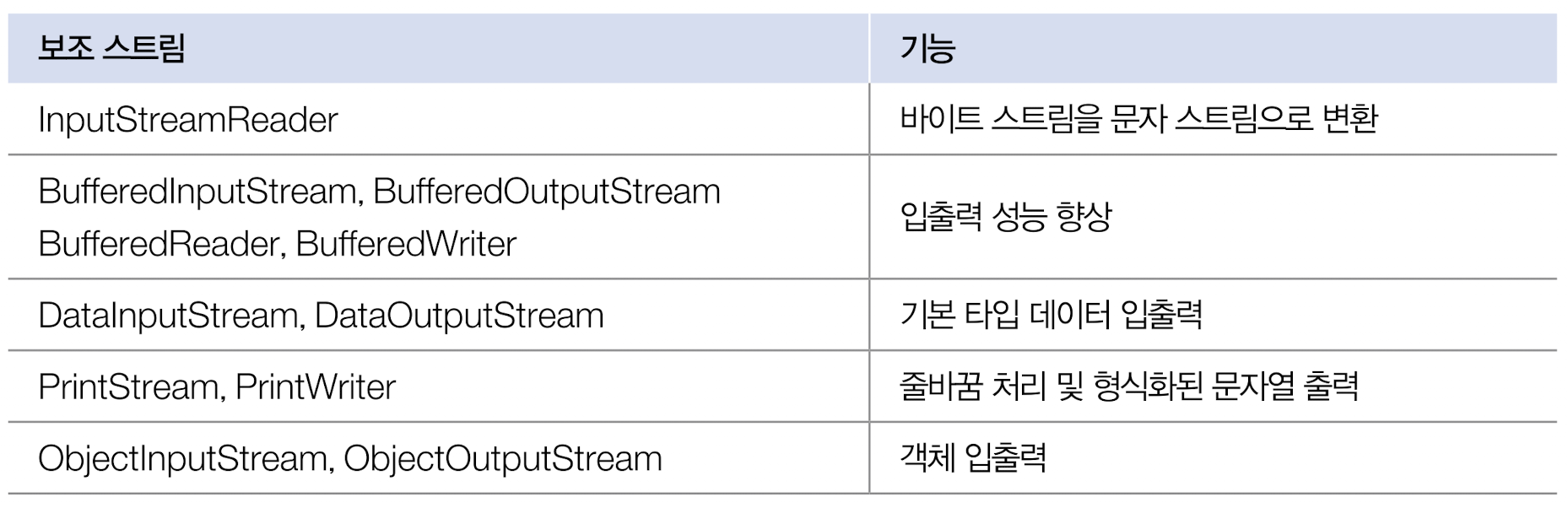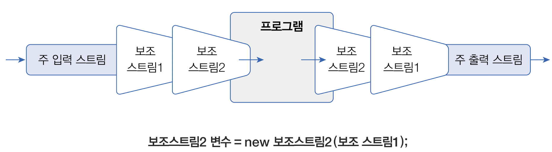 보조스트림 변수 = new 보조스트림(입출력스트림);