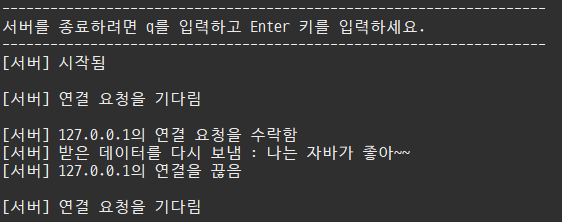 System.out.println("서버를 종료하려면 q를 입력하고 Enter 키를 입력하세요.");