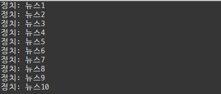 //10번째 뉴스를 받았을 경우 while 문 종료