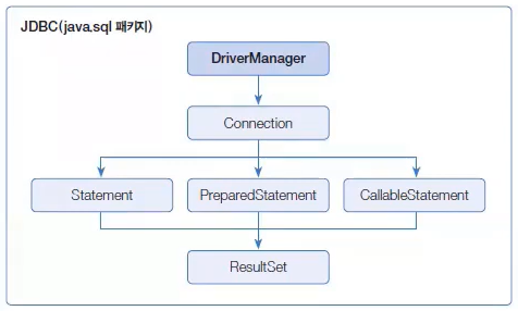 - Connection : Statement, PreparedStatement, CallableStatement 구현 객체를 생성하며, 트랜잭션 처리 및 DB 연결을 끊을 때 사용