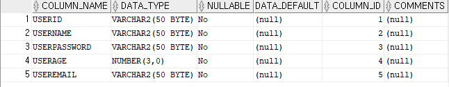//userid, username, userpassword, userage, useremail