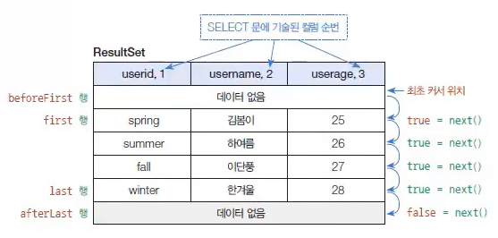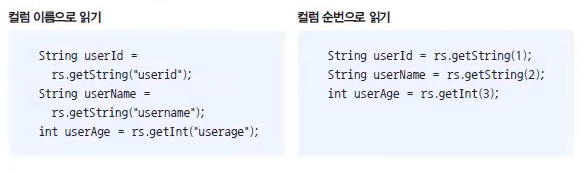 //SQL문 실행 후, ResultSet을 통해 데이터 읽기