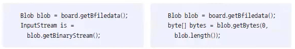 Blob 객체에 저장된 바이너리 데이터를 얻기 위해서는 아래와 같이 입력 스트림 또는 바이트 배열을 얻어내야 한다.