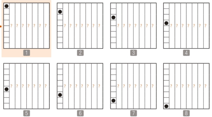 첫 번째 열에 퀸을 배치하는 경우의 수는 8개이다.