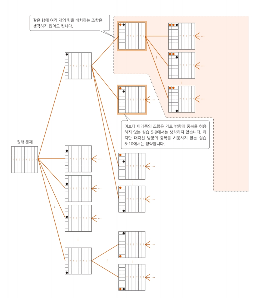 아직까지는 퀸이 행 방향과 열 방향으로 겹쳐지지 않는 조합을 나열하기만 한 것이다.