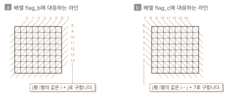 flag_c[i - j + 7] == false) // 대각선 ↘에 아직 배치하지 않음