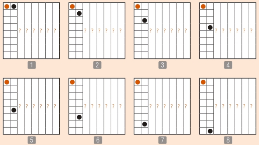 두 번째 열에 퀸을 배치하는 경우의 수 또한 8개이다.