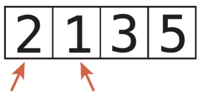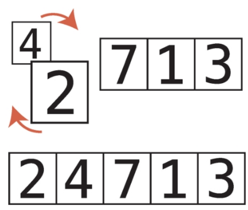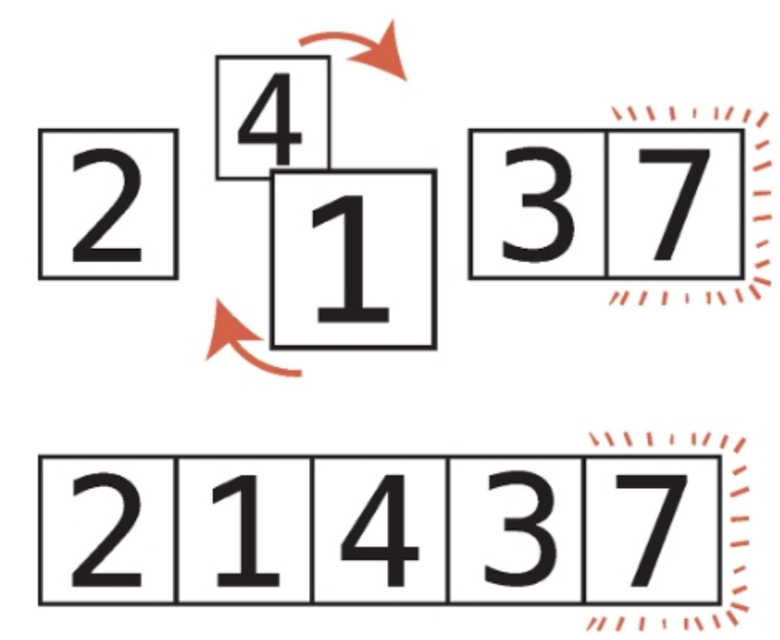 2. 두 항목의 순서가 뒤바뀌어있으면, 두 항목을 교환한다. (순서가 올바르다면 2단계에선 아무것도 하지 않는다.)