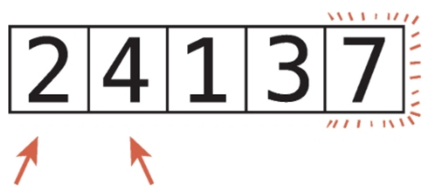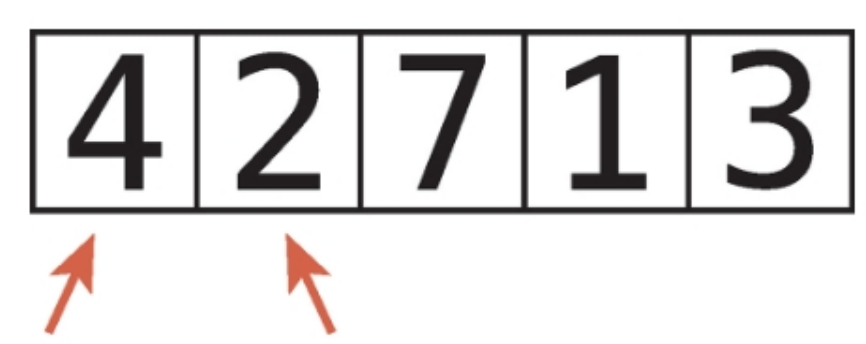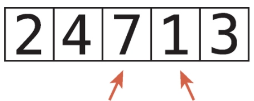 1. 배열 내에서 연속된 두 항목을 가리킨다. 즉, 첫 번째 항목과 두번째 항목을 비교한다.