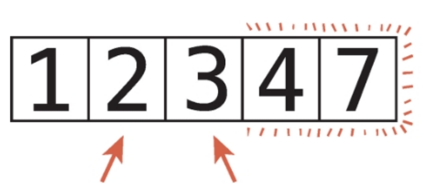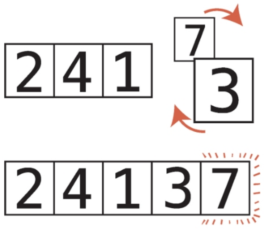 적절한 위치에 도달할 때까지 7을 계속해서 오른쪽으로 옮겼기 때문이다.