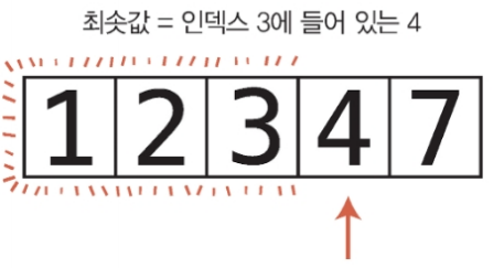 인덱스 0에 들어 있는 값을 확인하며 시작한다.